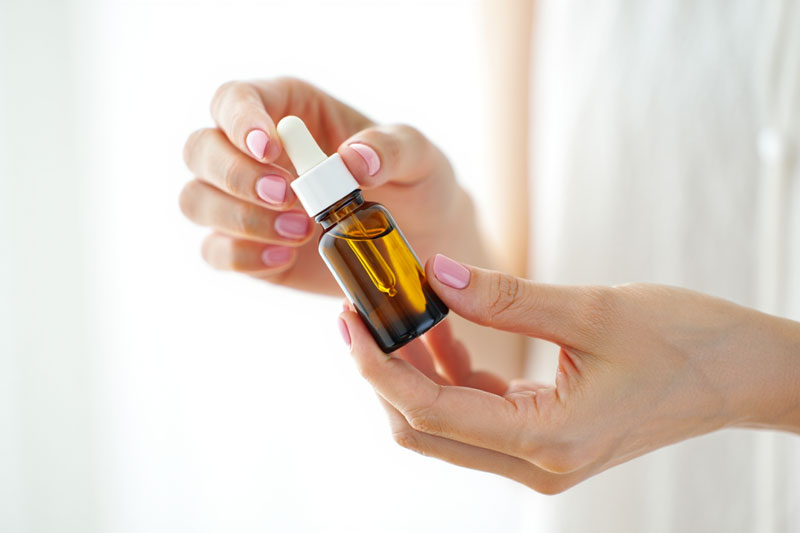 Pour les ongles, appliquez une goutte sur chaque ongle et son pourtour, massez légèrement et laissez poser toute la nuit. Une alternative : un bain d’huile une fois par semaine. Évitez l’exposition au soleil si vous mélangez l’huile à de l’essence de citron.