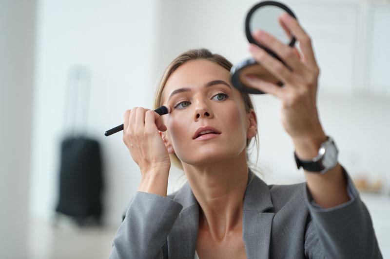 Pour voyager léger sans renoncer à votre routine beauté, il est important de sélectionner uniquement les produits indispensables. Commencez par un fond de teint compact ou un stick multifonction, qui permet de corriger le teint et de simplifier le maquillage en un seul geste. Ajoutez un rouge à lèvres, un mascara et une poudre compacte, essentiels pour retoucher rapidement votre look pendant la journée.
