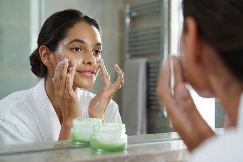 - Exfoliez uniquement sur une peau saine, jamais après un coup de soleil ou sur une zone irritée