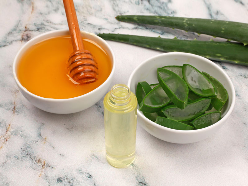 Ingrédients : 1 c. à café d’aloe vera, 2 c. à café de miel.