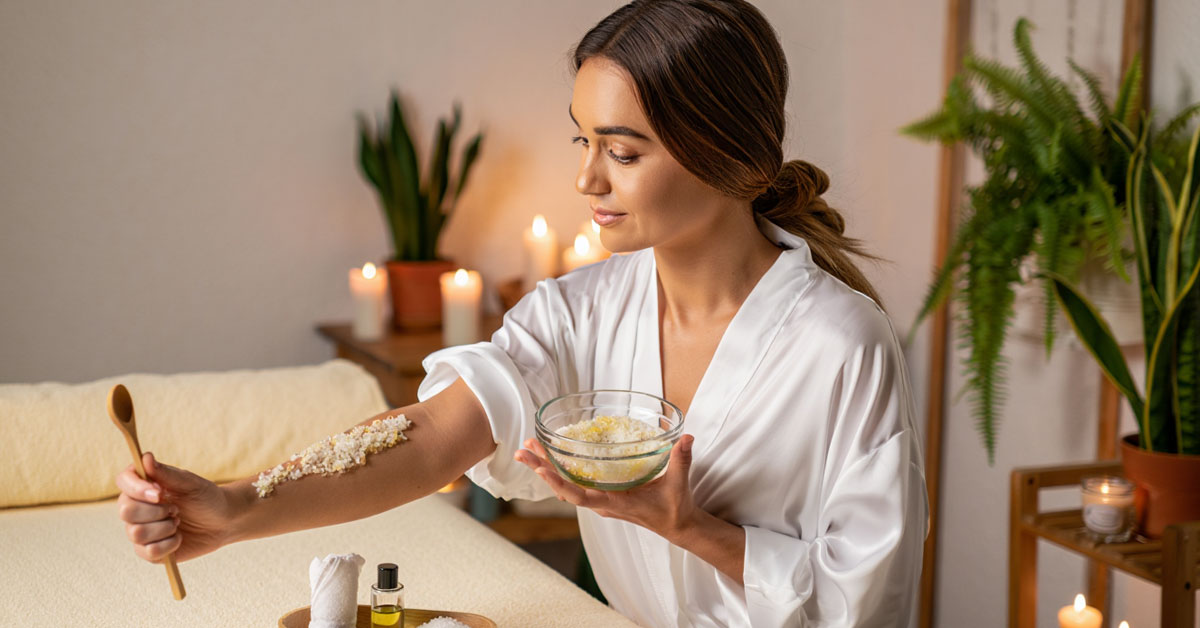 La règle d’or pour ne pas se tromper est simple : mélangez environ deux tiers d’exfoliant (sucre, marc de café, sel) pour un tiers de liant (huile, miel, yaourt). L’objectif est d’obtenir une pâte granuleuse qui se tient, sans être trop liquide.